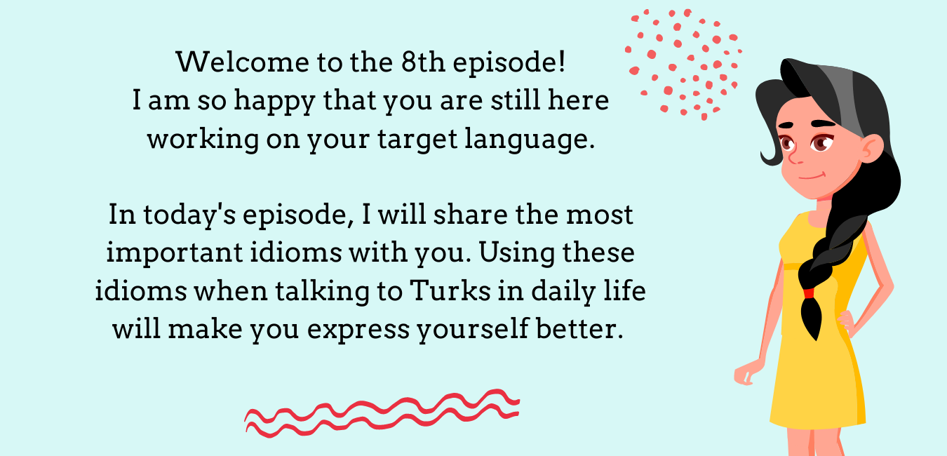 Idioms really matter. For example, if someone is constantly using idioms when speaking to you in Turkish, you will understand the words but you will not understand what they mean. Therefore, it is necessary to pay special attention to idioms and to memorize, study and learn them. Of course I cannot teach you all the idioms you need in this episode. Otherwise it will be too long. But as always, I’ve selected the most important ones, the most frequently used ones for you. Let’s start!